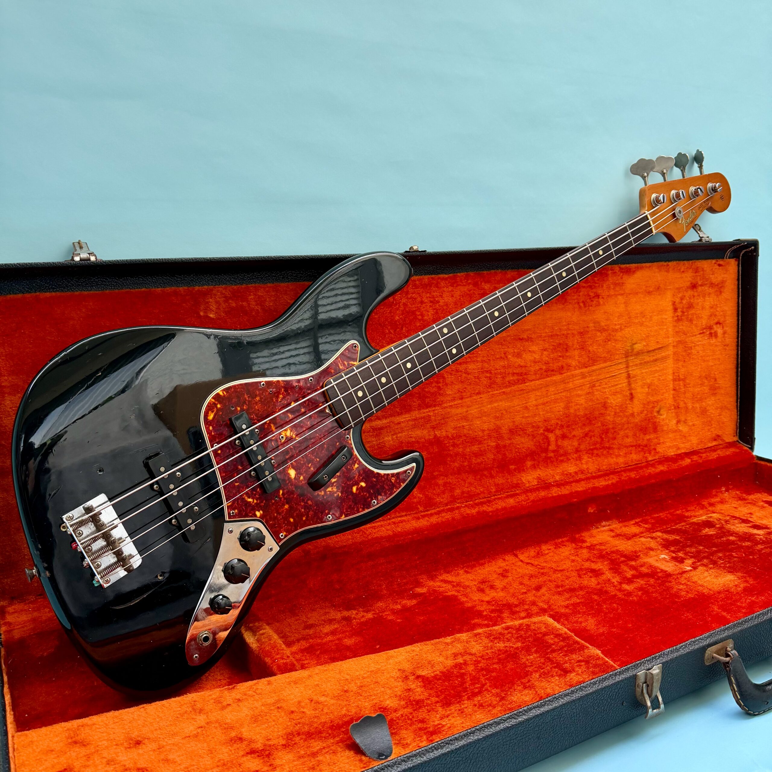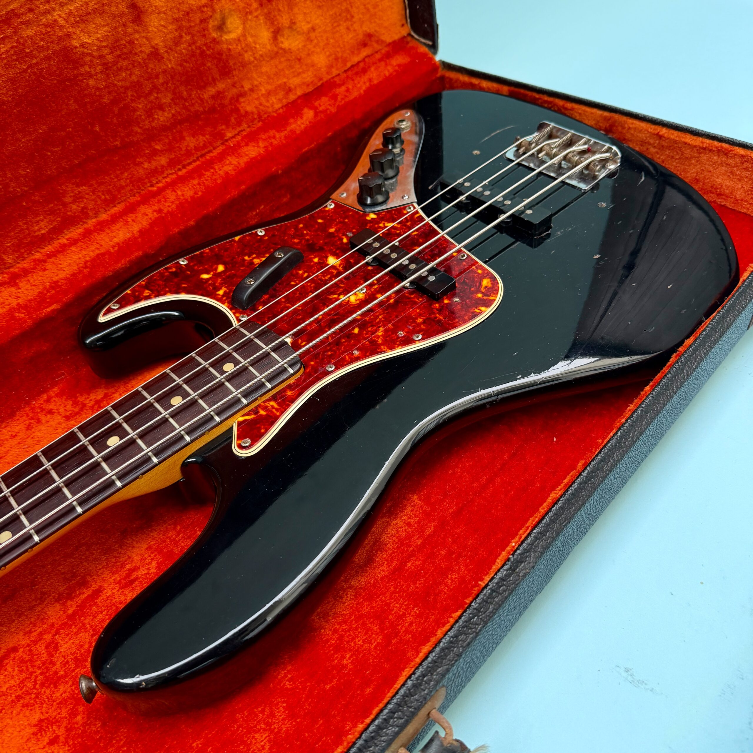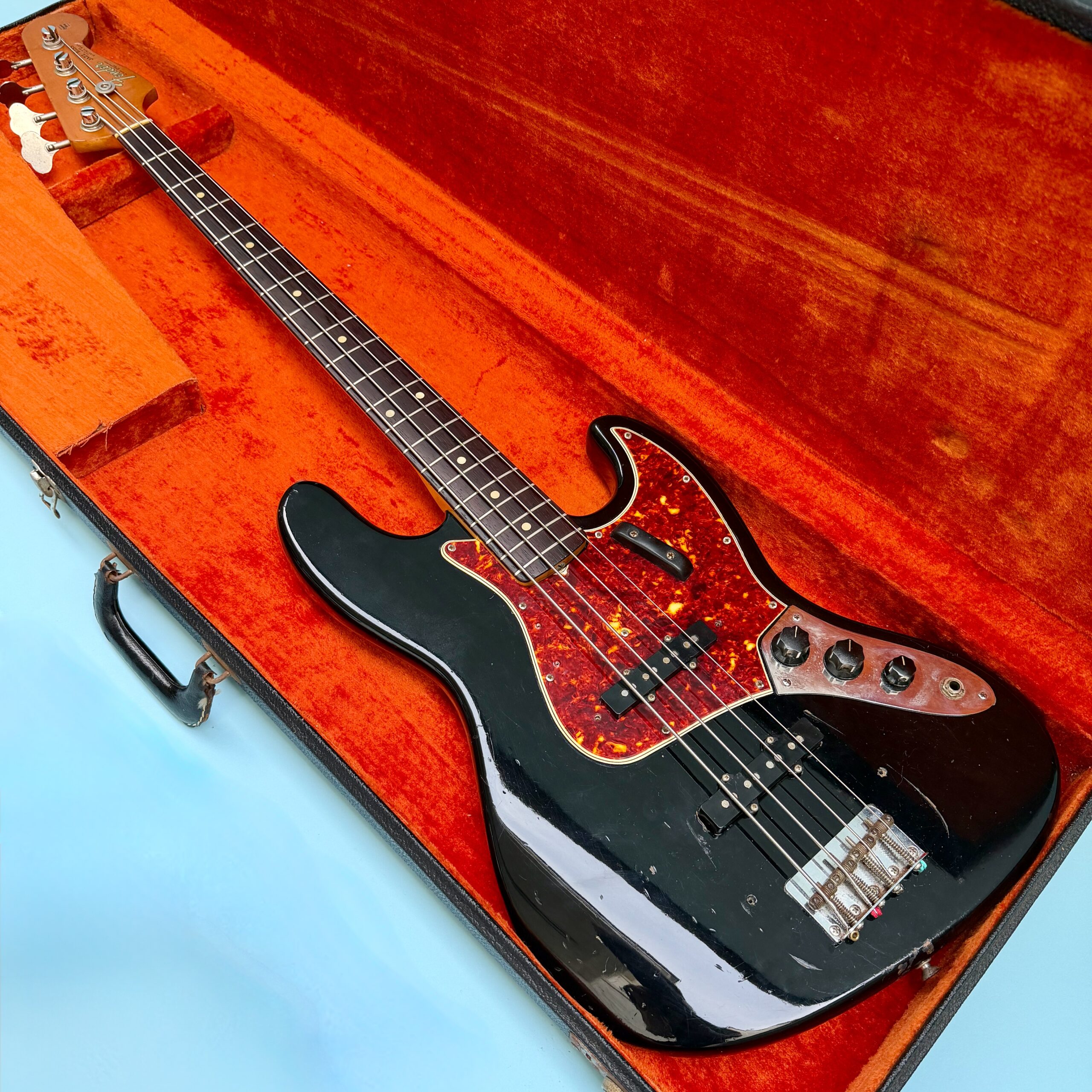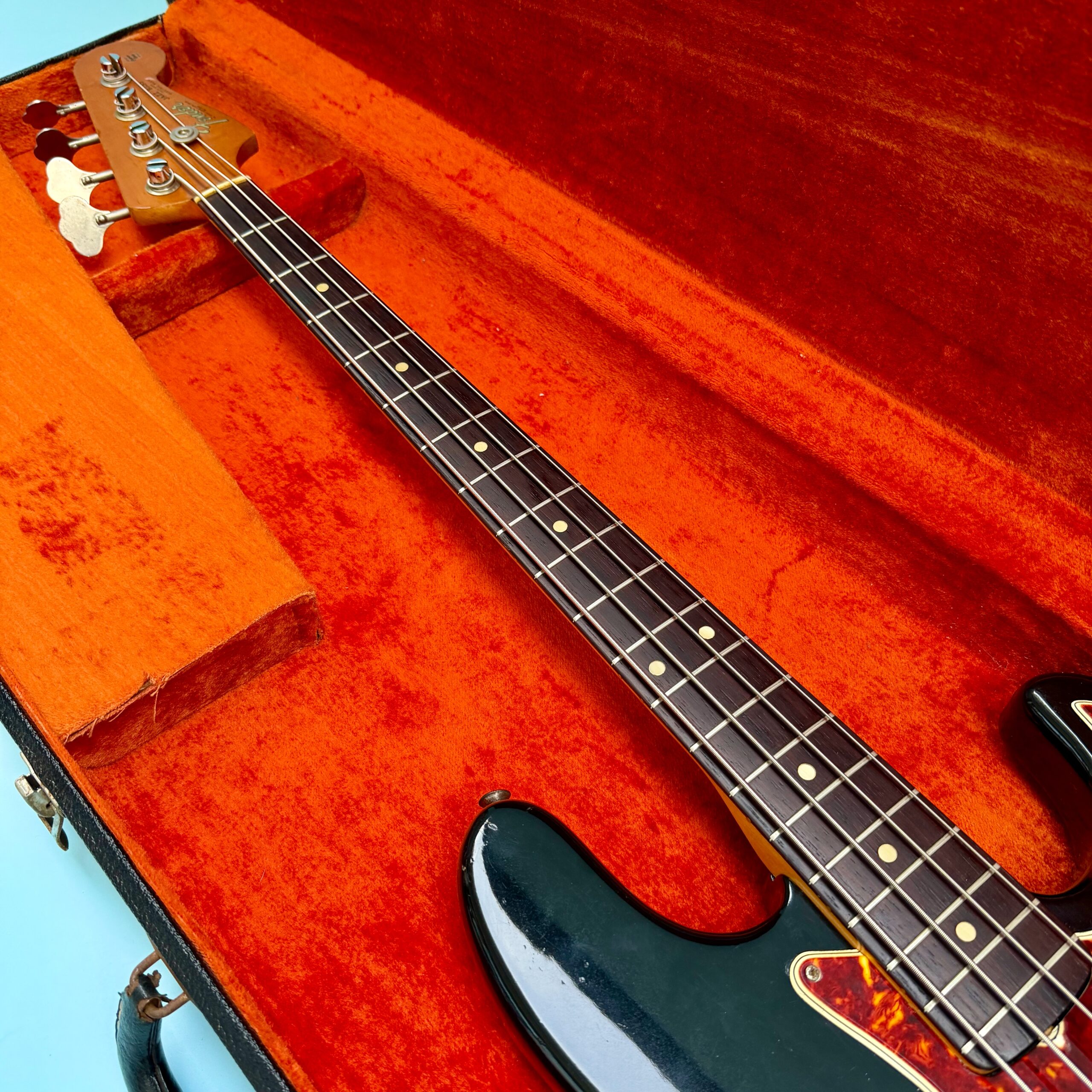 Comes with its original Black Tolex hardcase with Fender logo in excellent condition, all latches working, springs still strong. This is a great opportunity to get a real deal mid ’60s Jazz Bass mostly original at a reasonable price.
