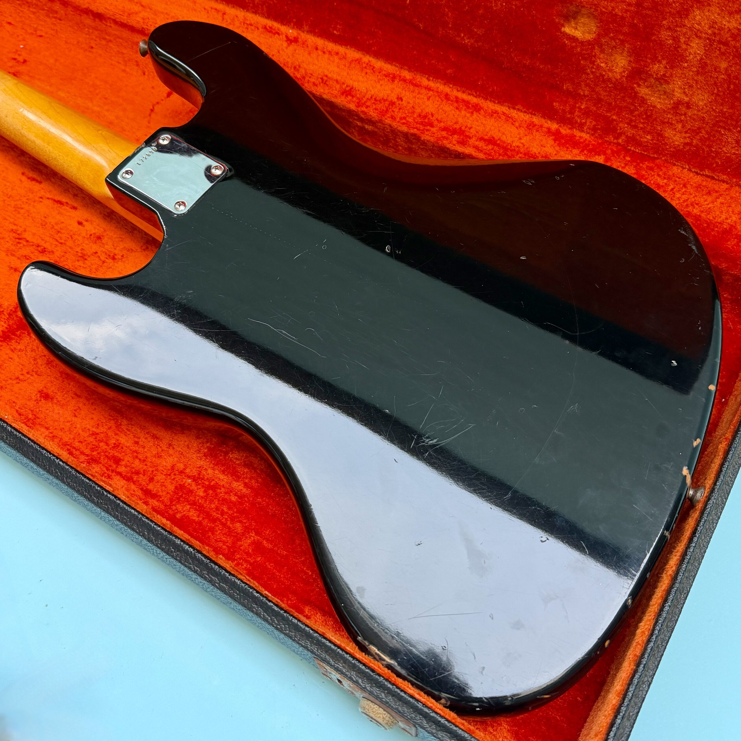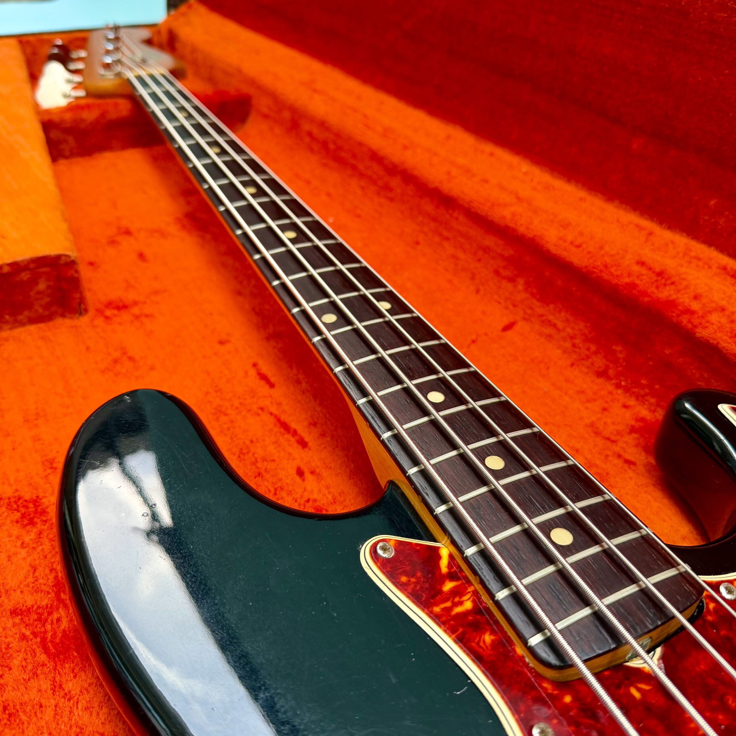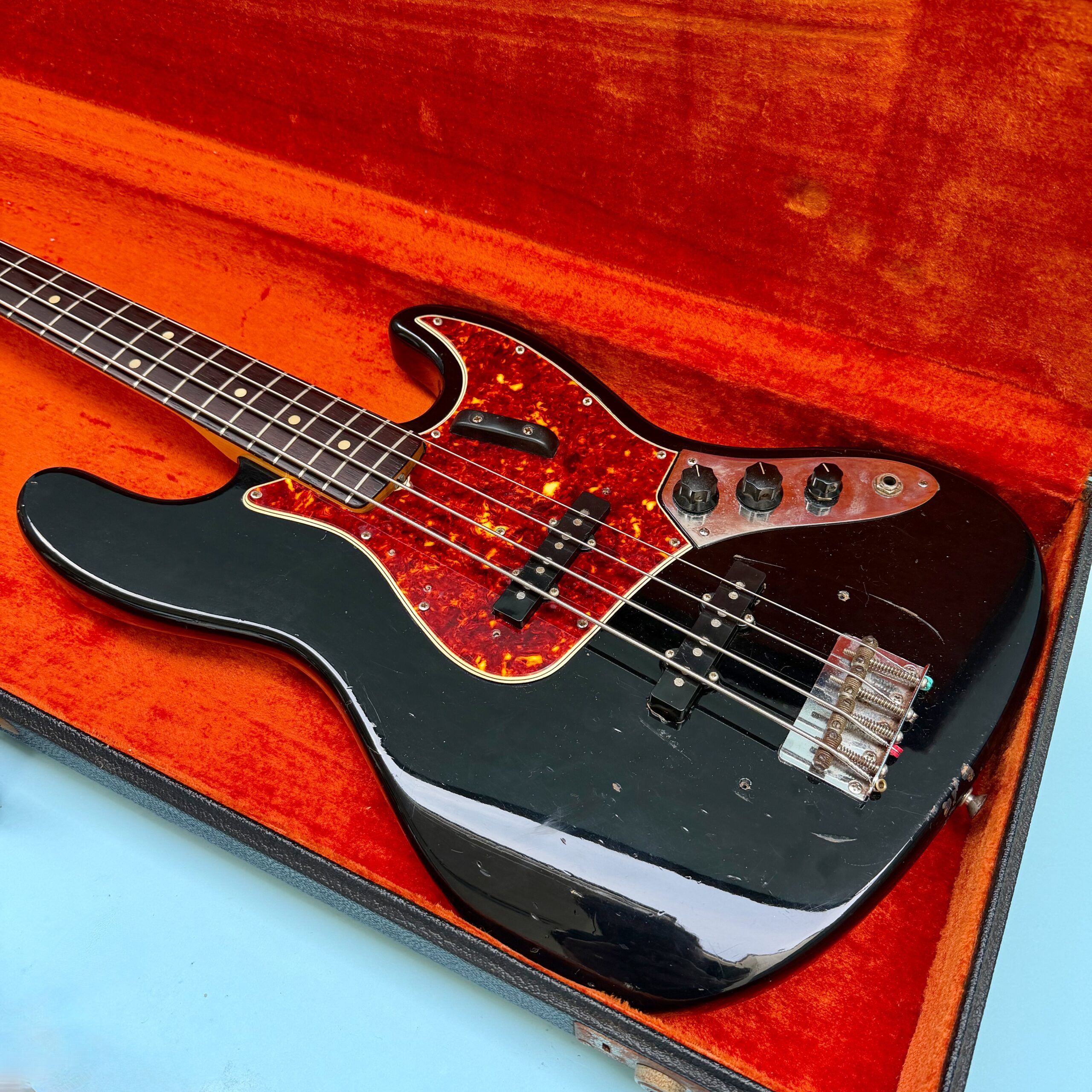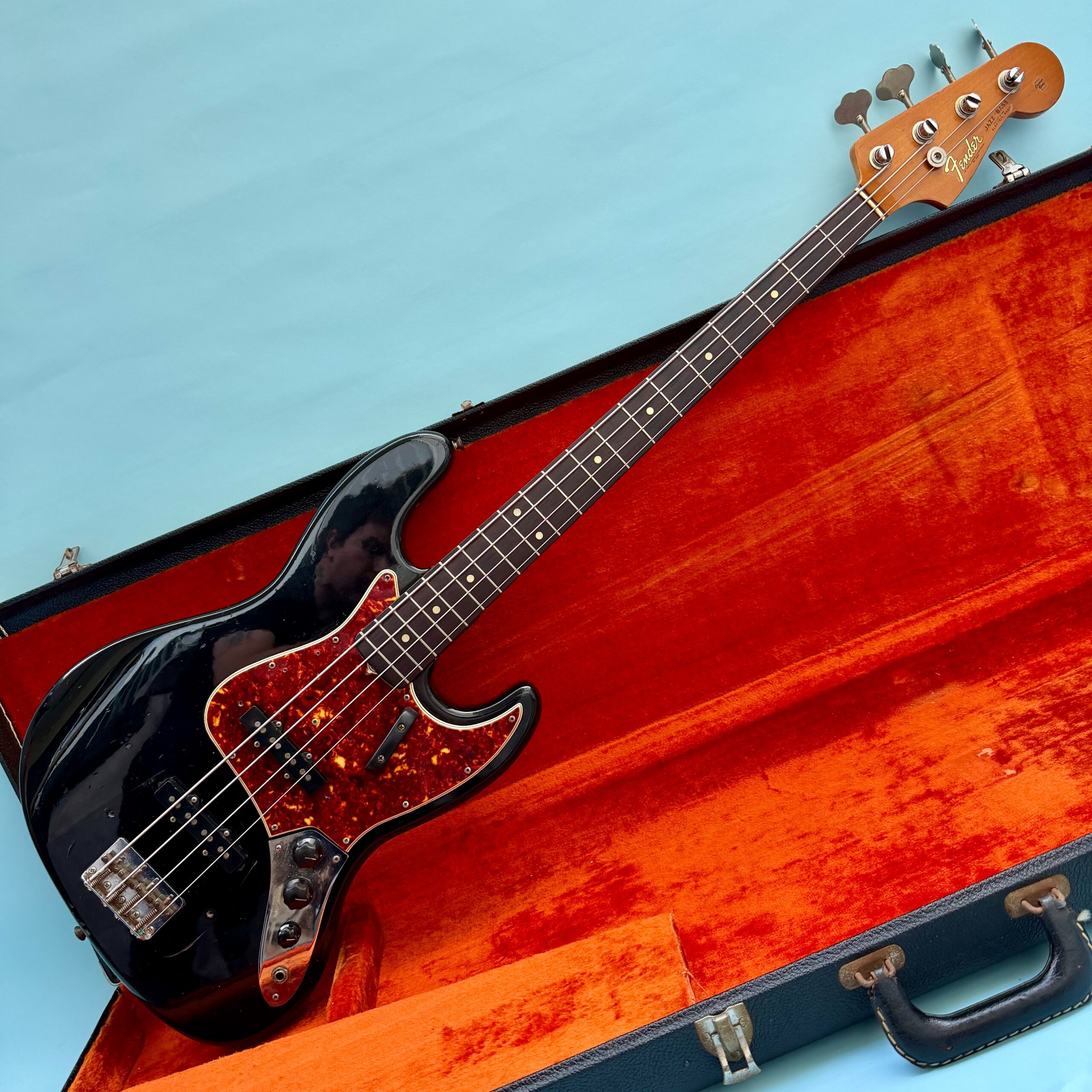 Comes with its original Black Tolex hardcase with Fender logo in excellent condition, all latches working, springs still strong. This is a great opportunity to get a real deal mid ’60s Jazz Bass mostly original at a reasonable price.