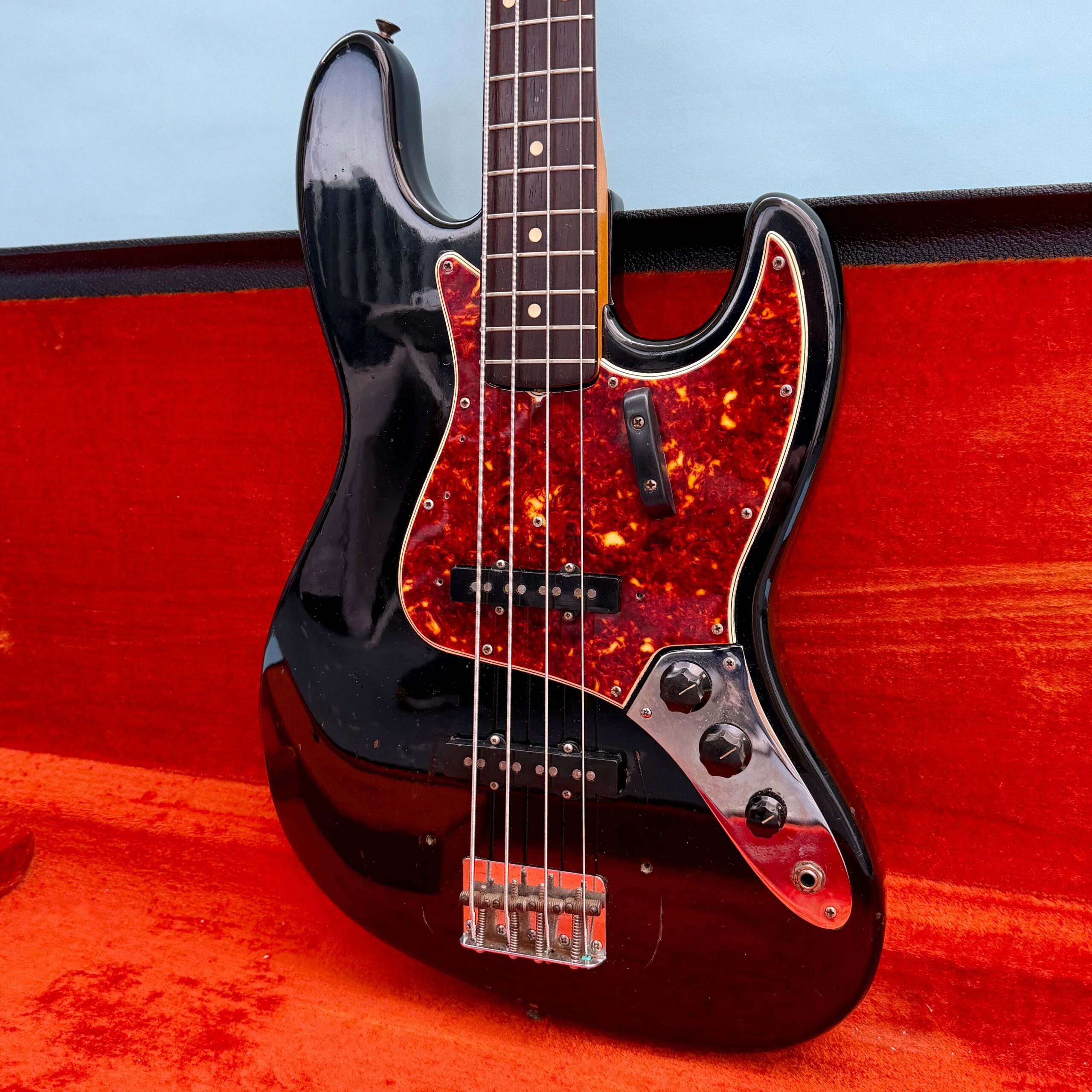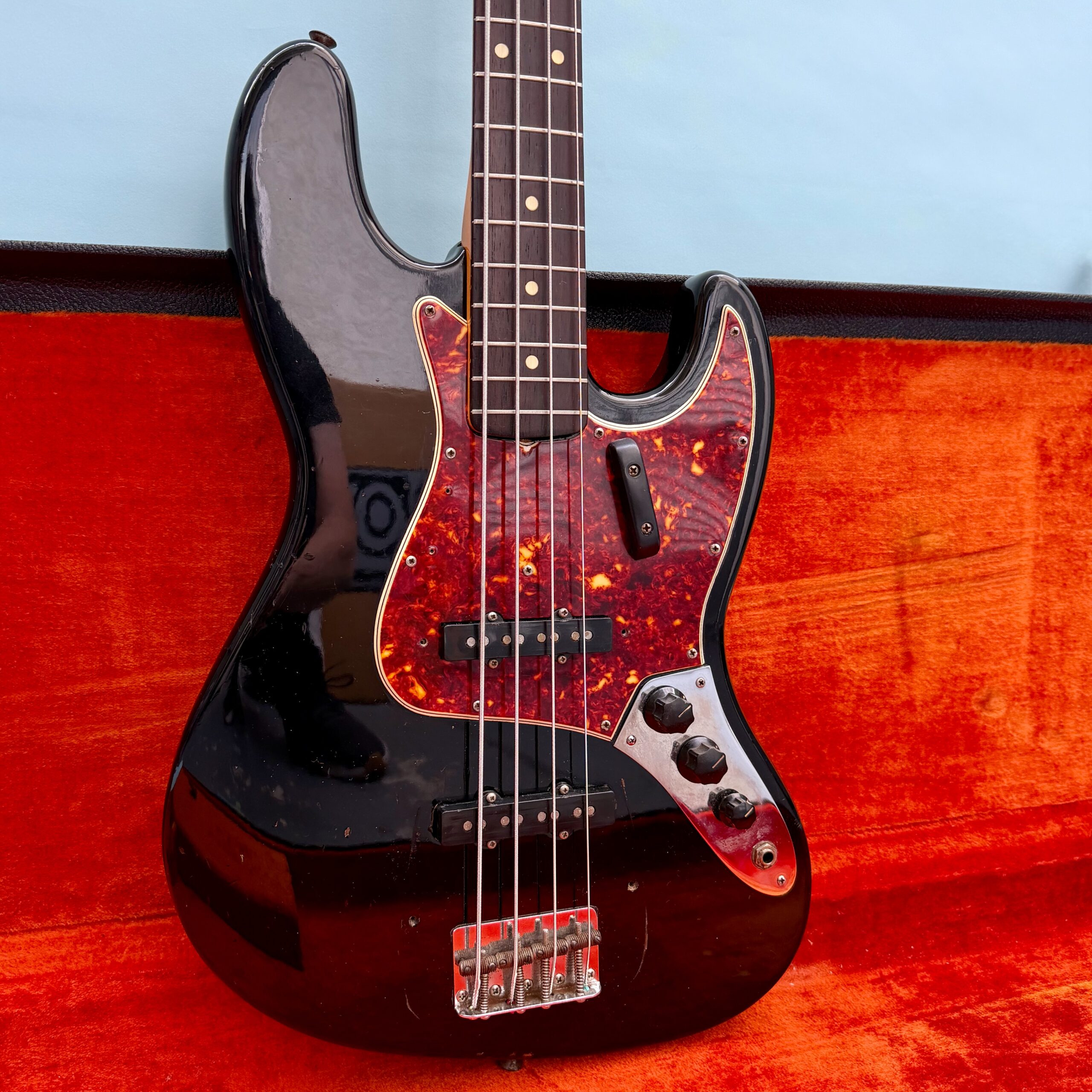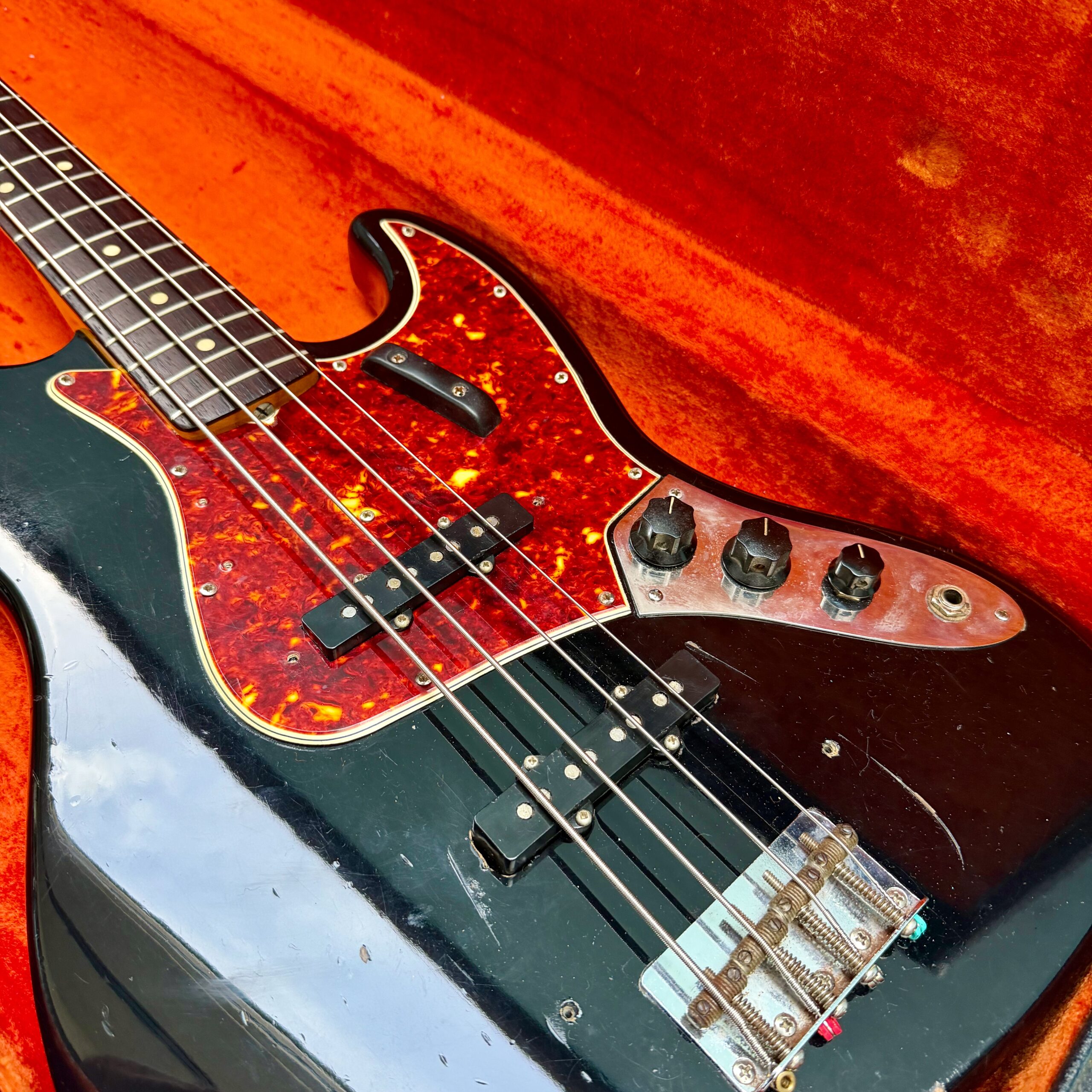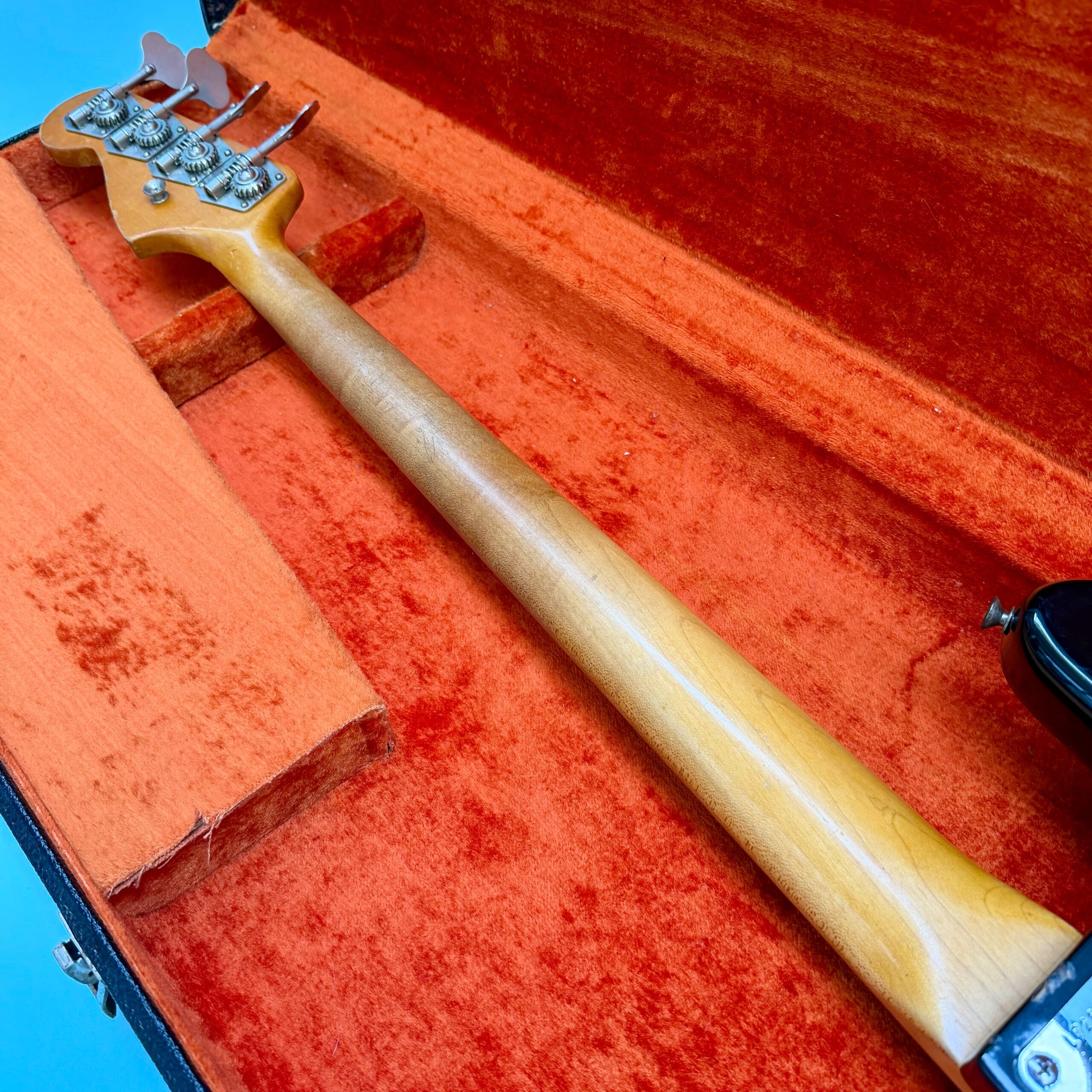 Comes with its original Black Tolex hardcase with Fender logo in excellent condition, all latches working, springs still strong. This is a great opportunity to get a real deal mid ’60s Jazz Bass mostly original at a reasonable price.