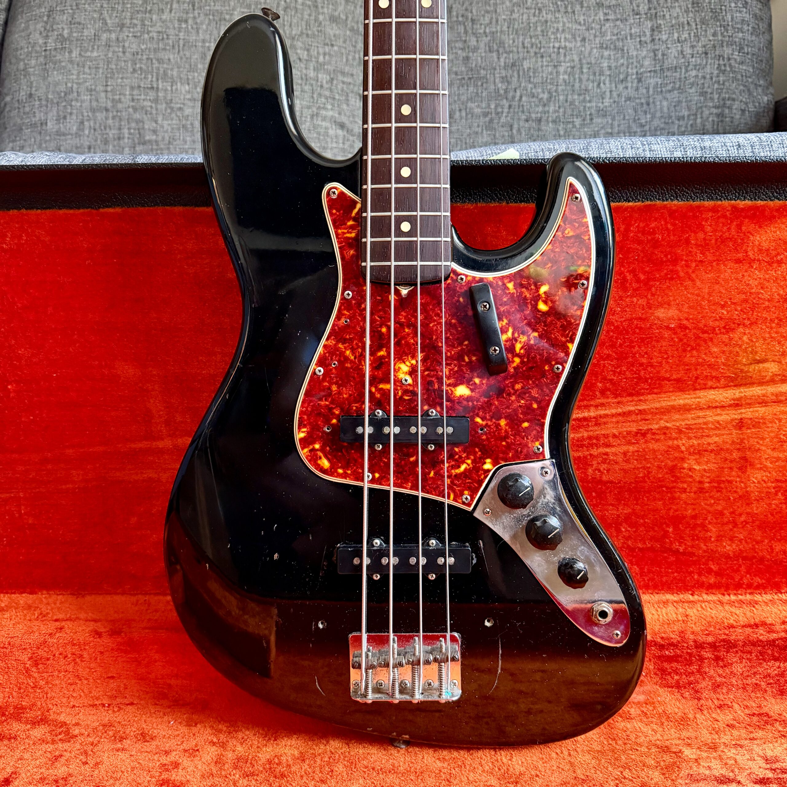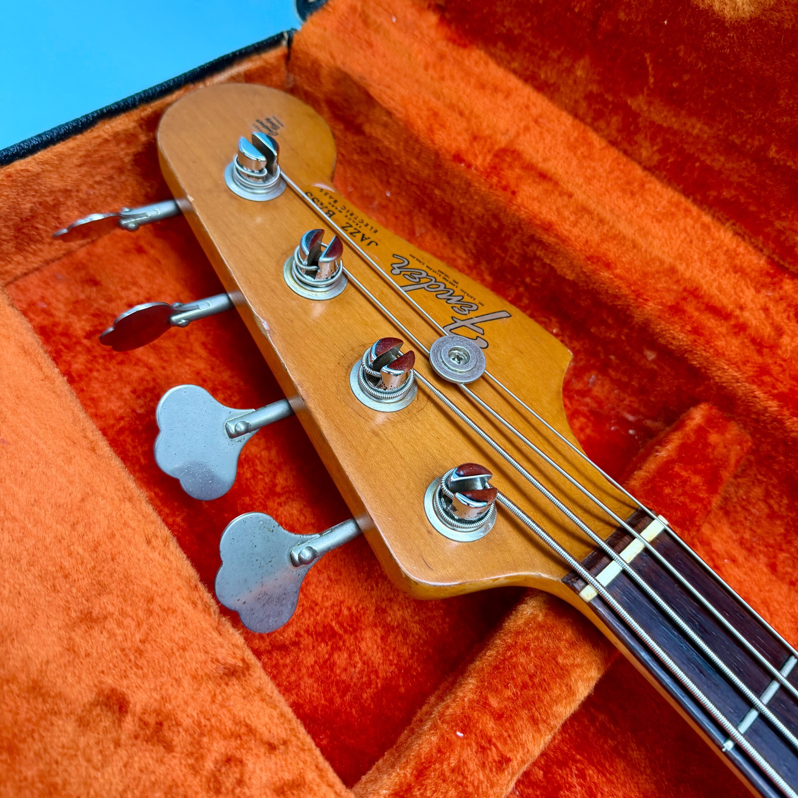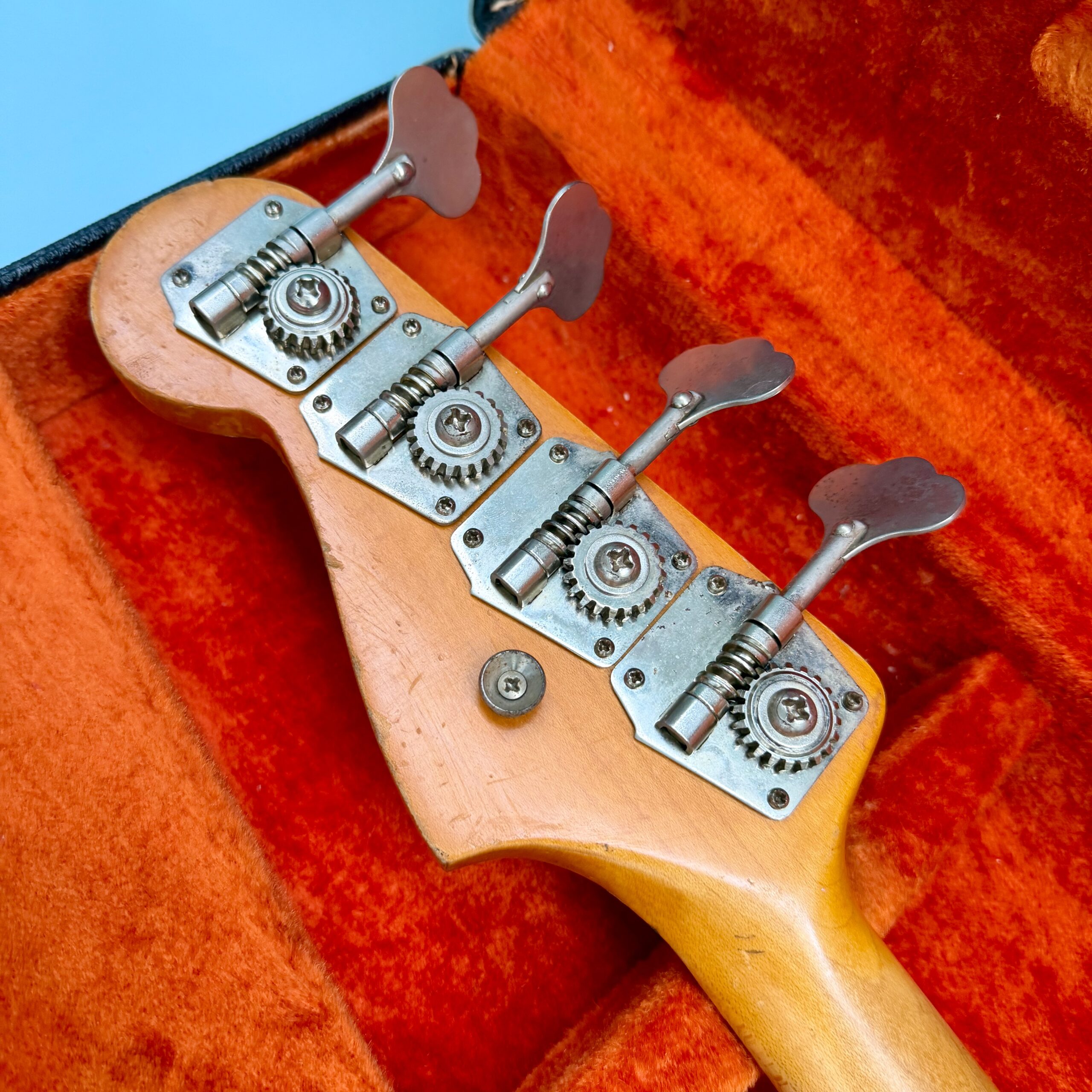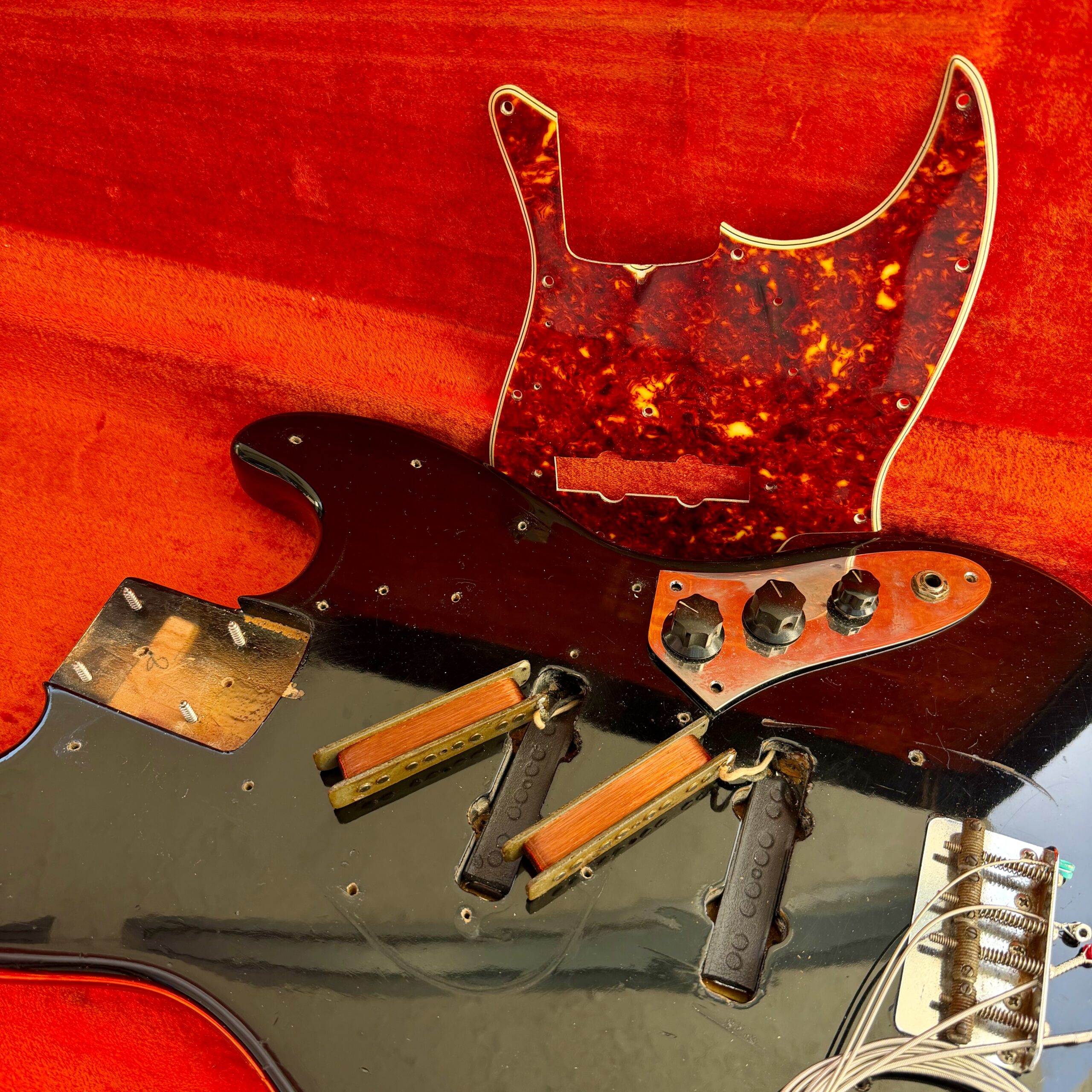 Comes with its original Black Tolex hardcase with Fender logo in excellent condition, all latches working, springs still strong. This is a great opportunity to get a real deal mid ’60s Jazz Bass mostly original at a reasonable price.