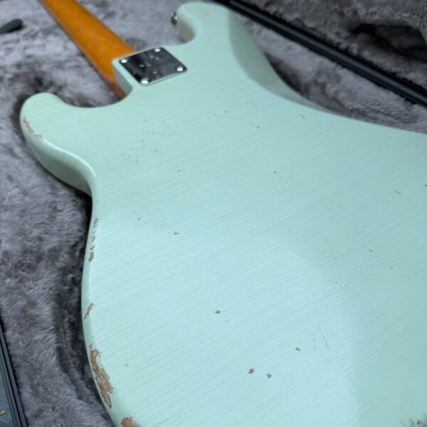 We paired it with an MJT lightweight alder body (4 Lbs 6 Oz) in a stunning, aged Sonic Blue finish. The lacquer has natural checking and a tasteful moderate relic that truly looks and feels like an early-’60s body that’s been played, loved, and aged gracefully.