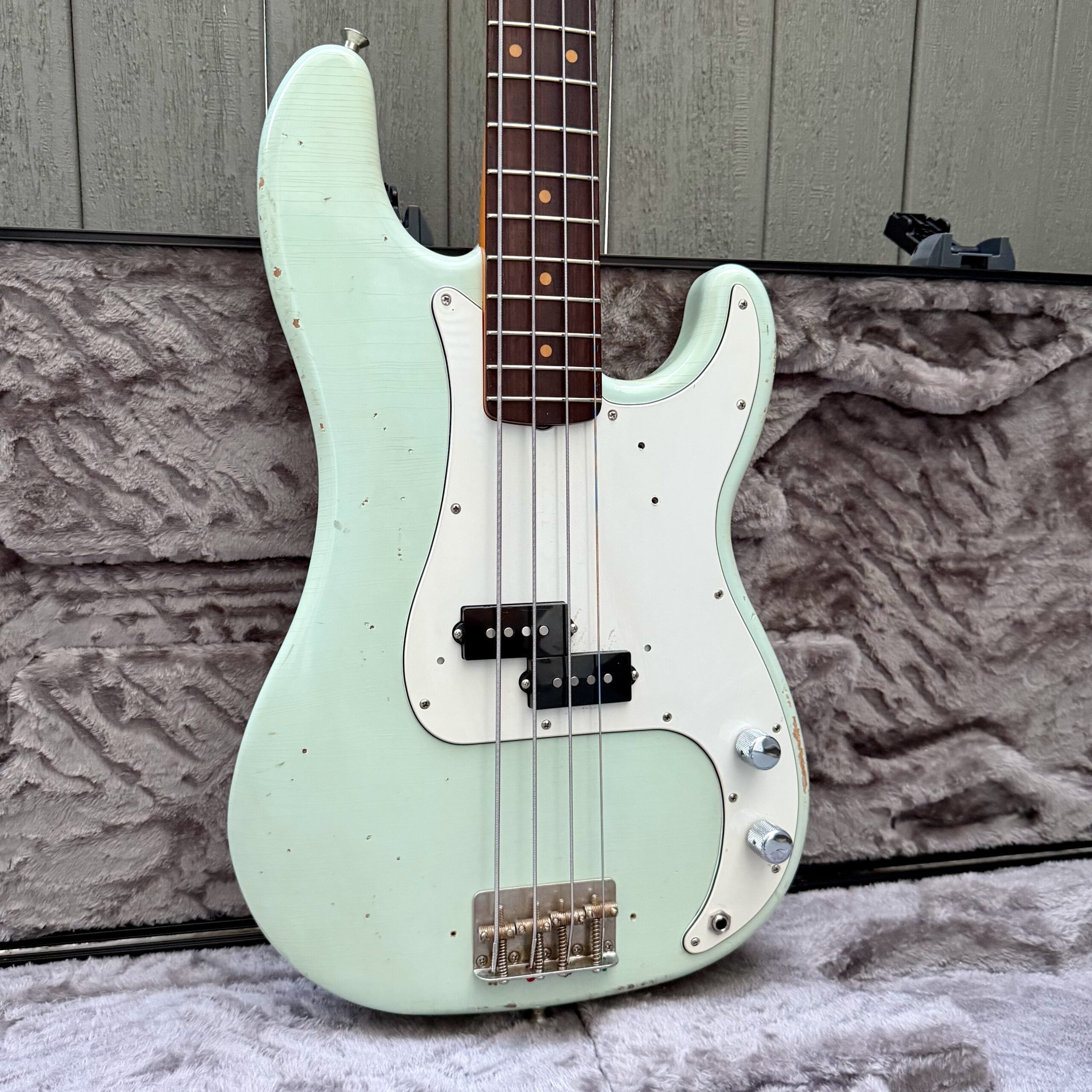 Up for sale is a truly special Fender Makeover, a hand-curated recreation of a 1960 Precision Bass that we approached with the same philosophy and care we apply to our vintage instruments. This bass began life as an American Vintage II 1960 Precision Bass, but from there, we set out to elevate it to Custom Shop level and beyond, outsourcing only the best possible components and finishing details. The entire build was inspired directly by one of our original in-house 1960–61 slab board Precision Basses, making this a faithful recreation rather than just a parts build. Very lightweight at 8 Lbs even, just like a real deal early ’60s P should.