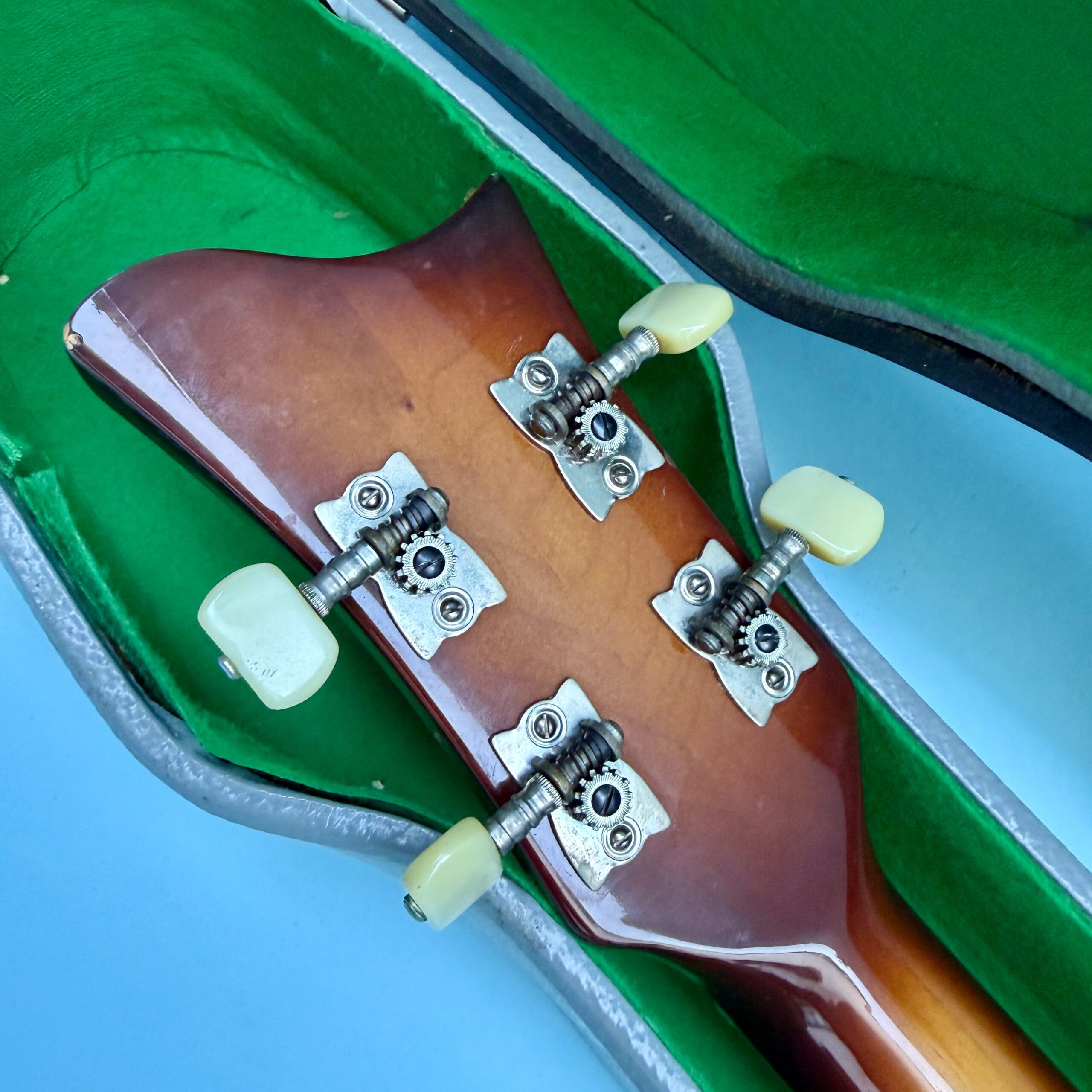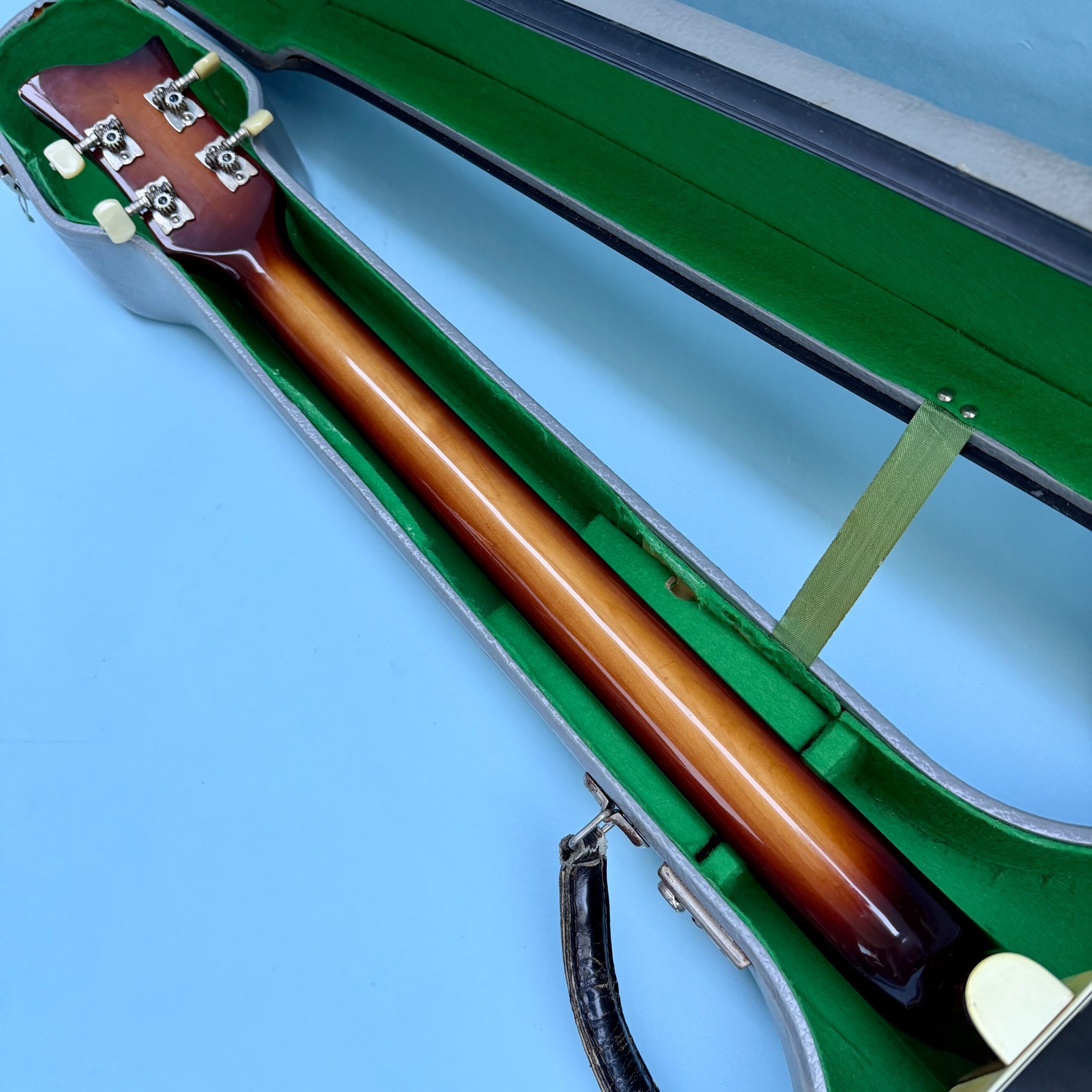 The raised Hofner logo and all binding, bridge, tuners, nut, strap buttons, and pickguard are clean and original. Includes its original hard case with velvet interior, in great shape for its age and there’s even the original purchase receipt in the case.