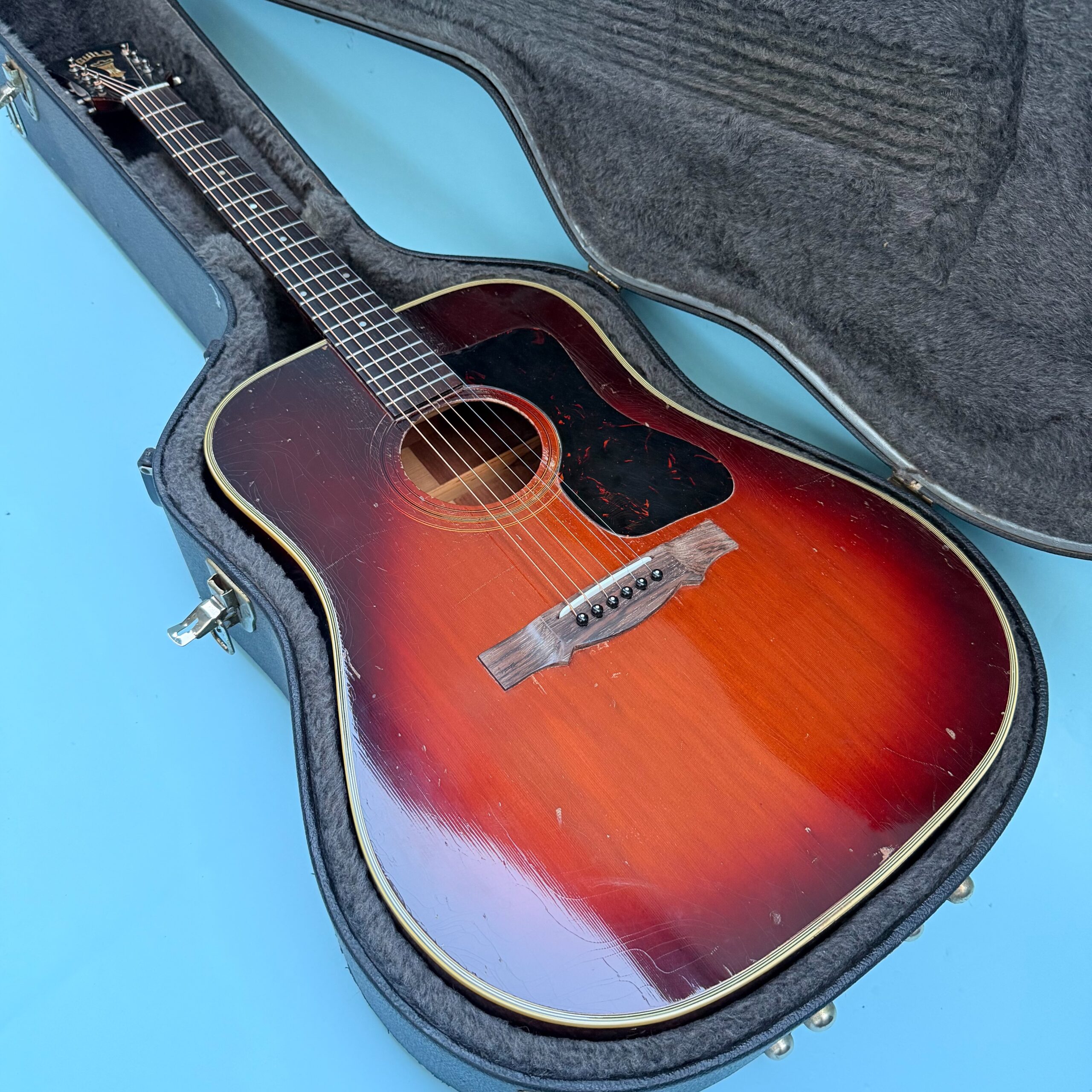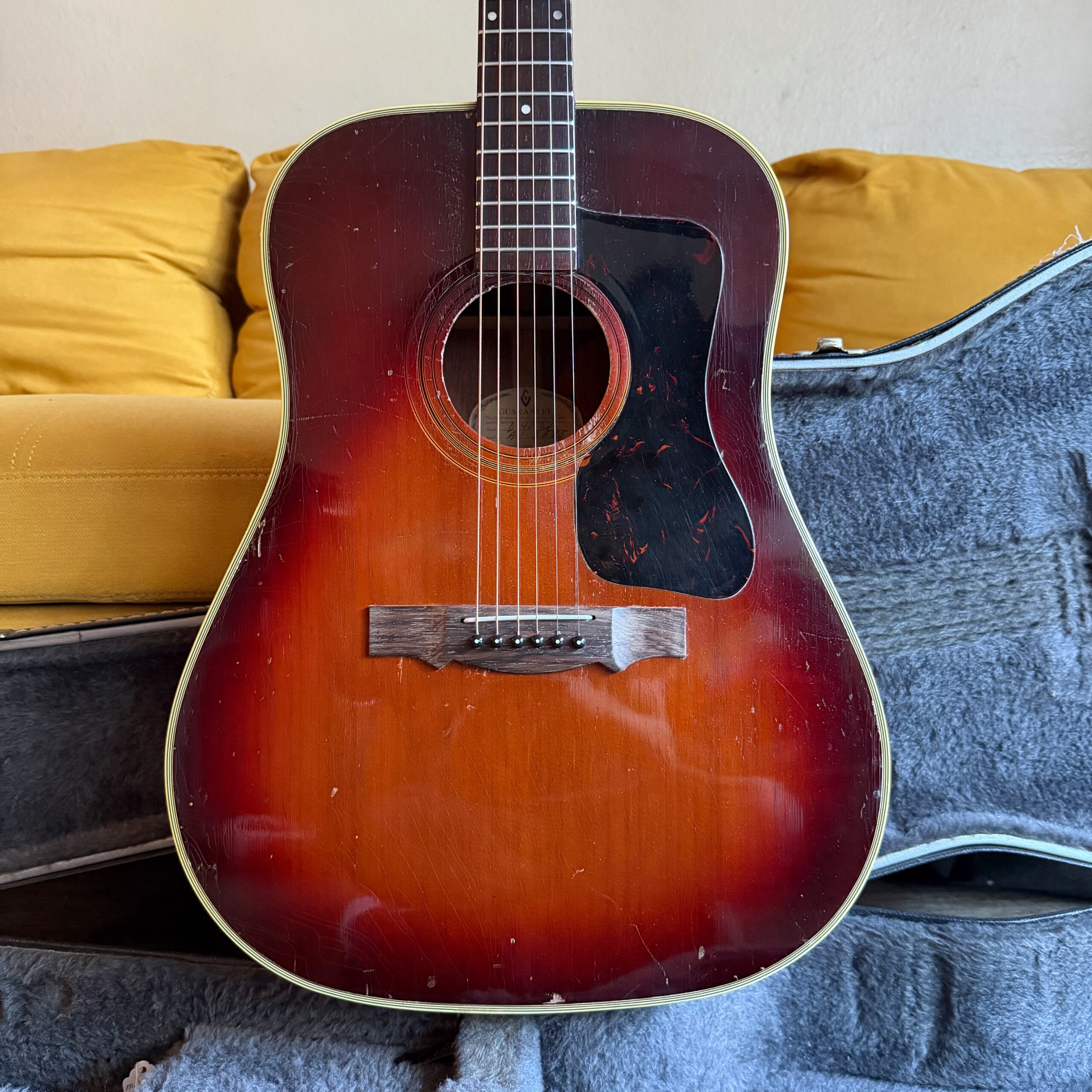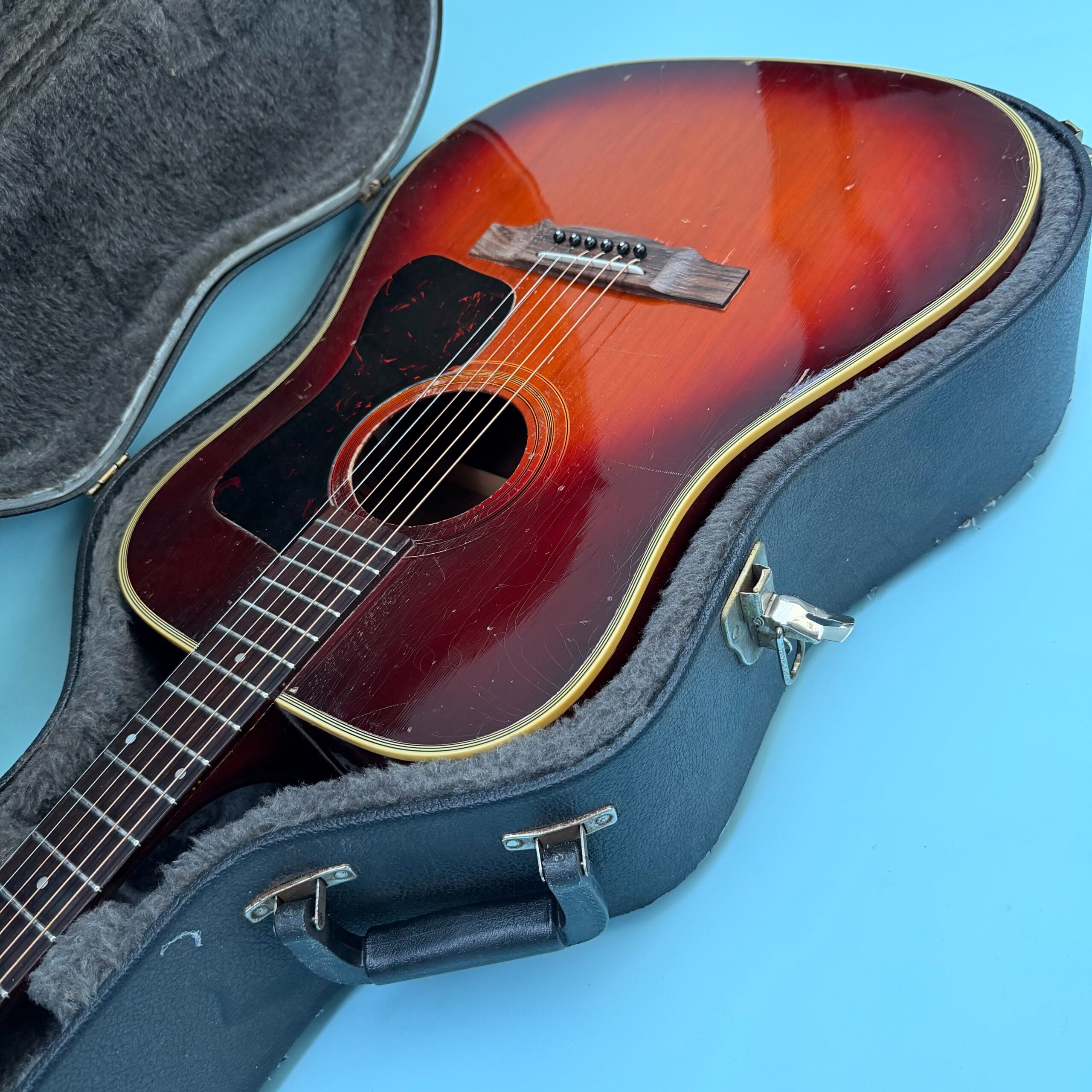 Up for sale, here’s a vintage 1968 Guild D-40 in Sunburst, a standout vintage dreadnought from Guild’s golden era in Hoboken, NJ. It has honest playwear that adds to its vintage charm, yet the guitar remains structurally sound and plays beautifully.