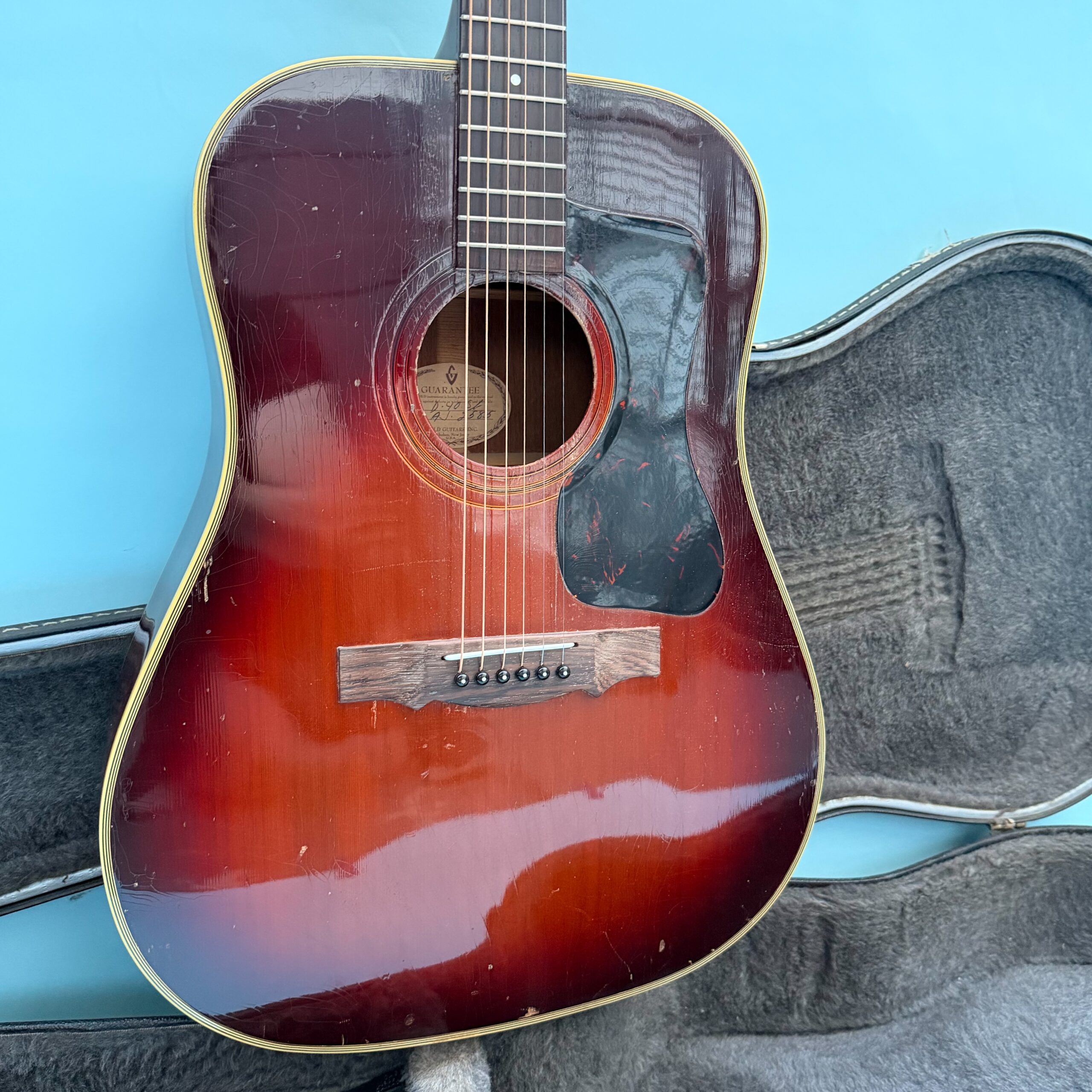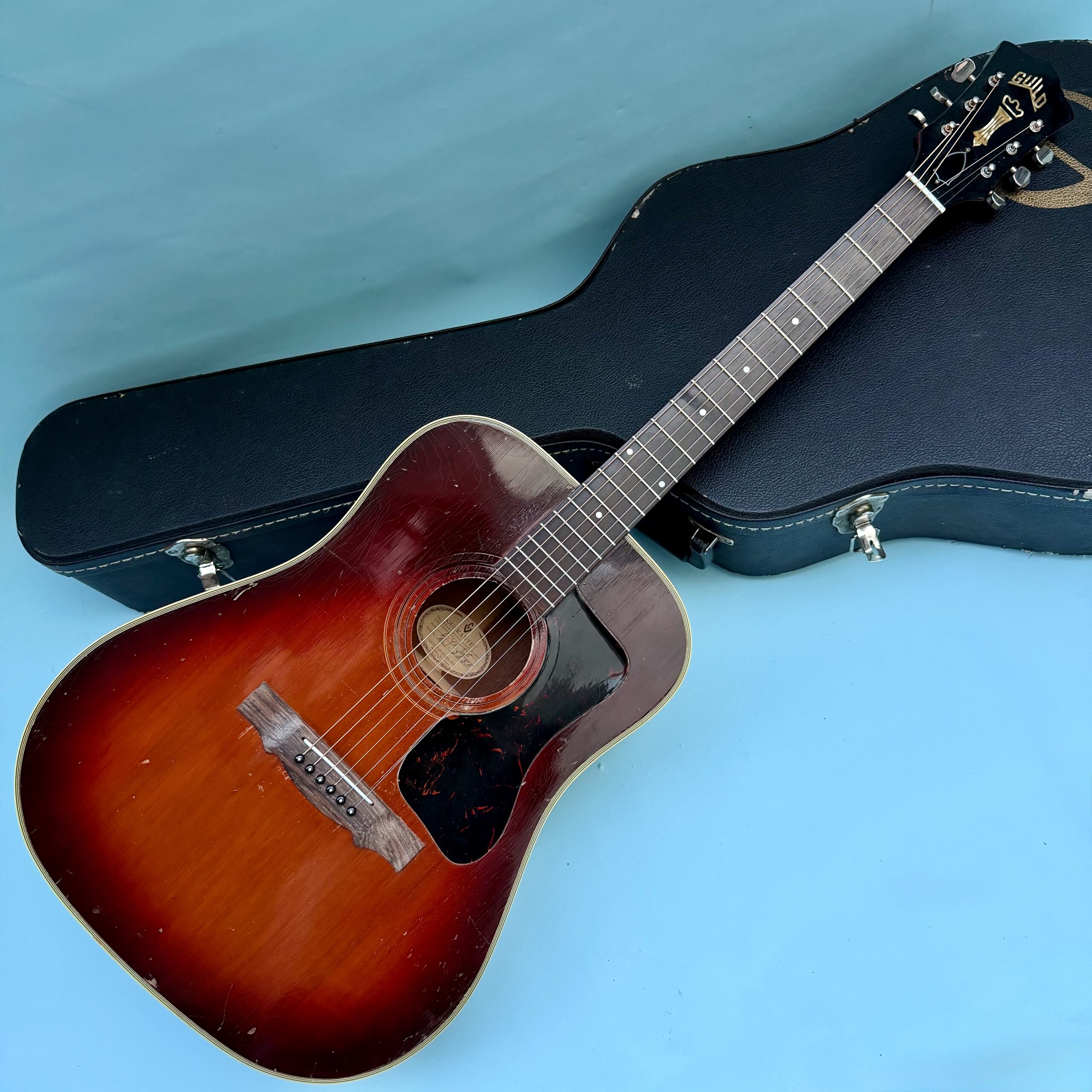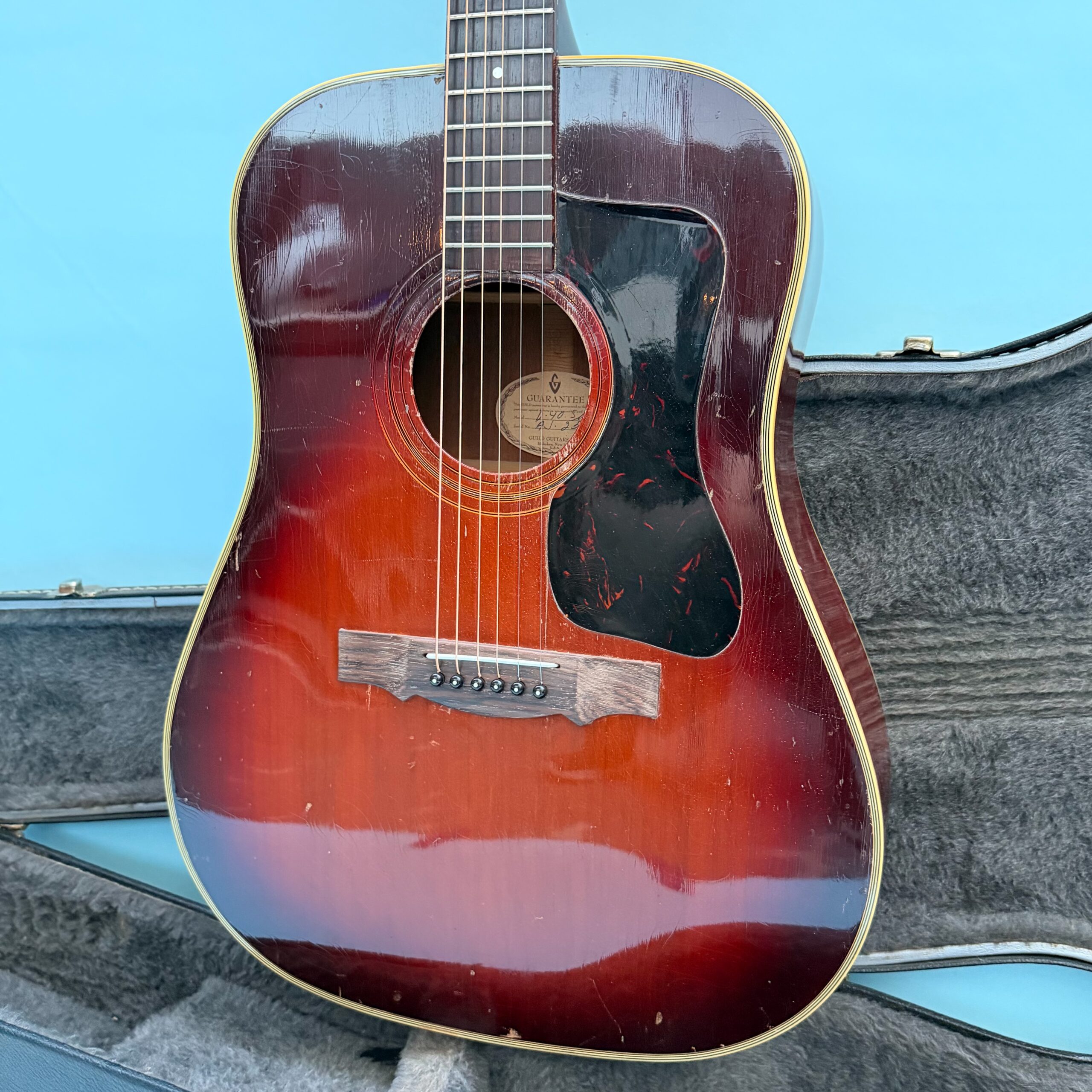 Up for sale, here’s a vintage 1968 Guild D-40 in Sunburst, a standout vintage dreadnought from Guild’s golden era in Hoboken, NJ. It has honest playwear that adds to its vintage charm, yet the guitar remains structurally sound and plays beautifully.
