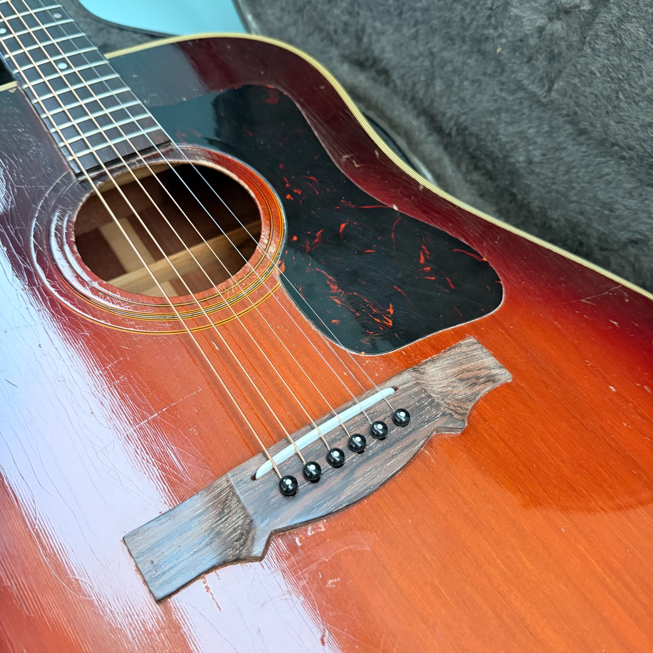 The guitar ships in a really cool Epiphone hard case, which is solid and works great. All original aside from the neck reset and nut replacement, this D-40 offers classic Guild warm tone, with that vintage dreadnought punch. Perfect for players seeking a vintage, playable instrument, or collectors looking for a golden-era Guild in excellent condition.